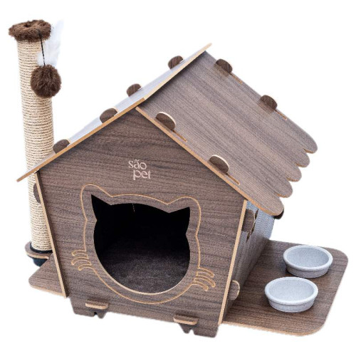 Confeccionado em madeira laminada de alta qualidade, oferece beleza, durabilidade e facilidade de limpeza, sendo perfeito tanto para os gatos quanto para o ambiente da sua casa.