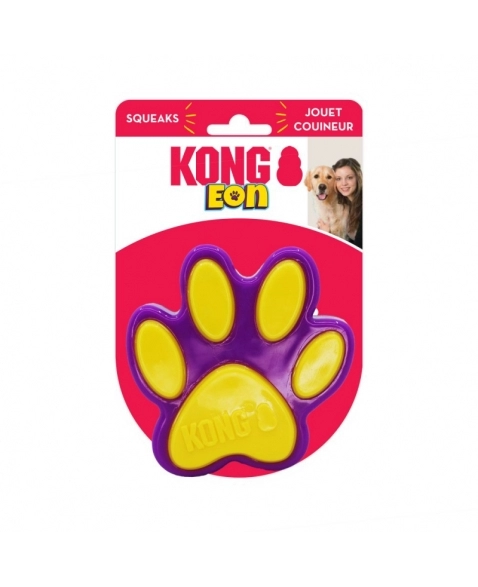KONG Eon é um brinquedo desenvolvido para cães de mordida leve e não destruidores. Perfeito pra ser jogado em brincadeiras de jogar e trazer, quica de maneira errática, estimulando os instintos de perseguição do cão. Flutua na água e possui um apito.