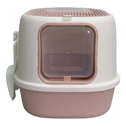Com um design fechado, este banheiro para gatos possui entradas pela porta frontal e pela parte superior, o que ajuda a minimizar a dispersão de areia, mantendo o ambiente mais limpo e organizado.